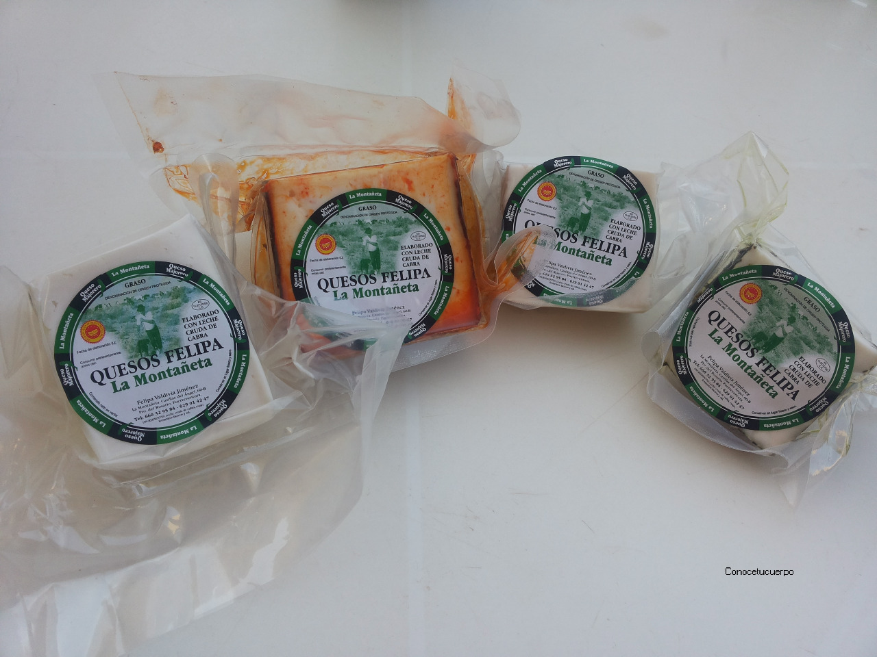 Aquí podeis ver varios tipos de queso: con pimentón, el natural de toda la vida y con orégano.